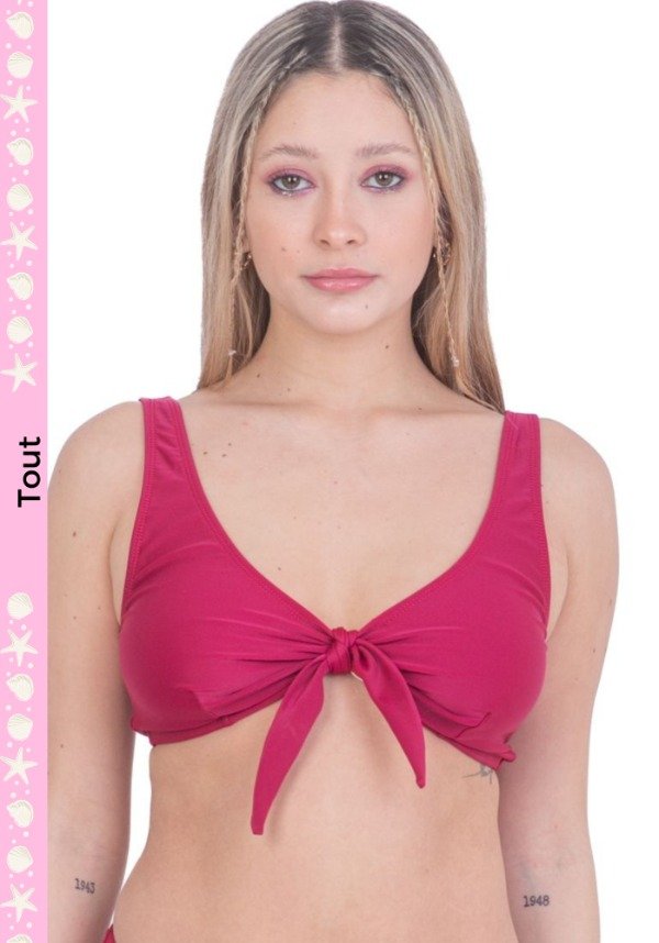 Corpiño diseñado con detalle anudado en la parte delantera, que añade un toque chic y femenino. Sus breteles anchos brindan mayor soporte y comodidad, mientras que la base elástica asegura un ajuste perfecto. Ideal para mucho busto!