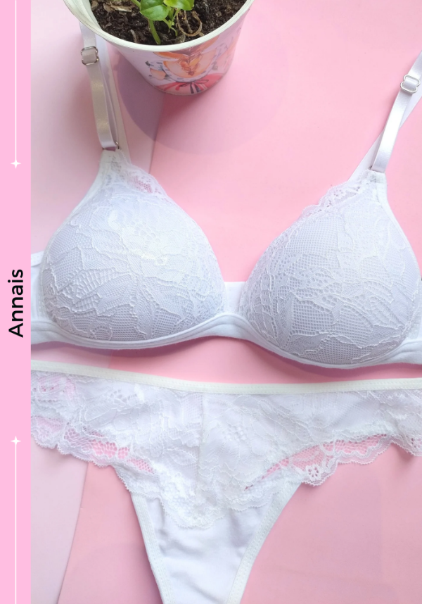 Conjunto triángulo soft de encaje y algodón. Less en puntilla y algodón.